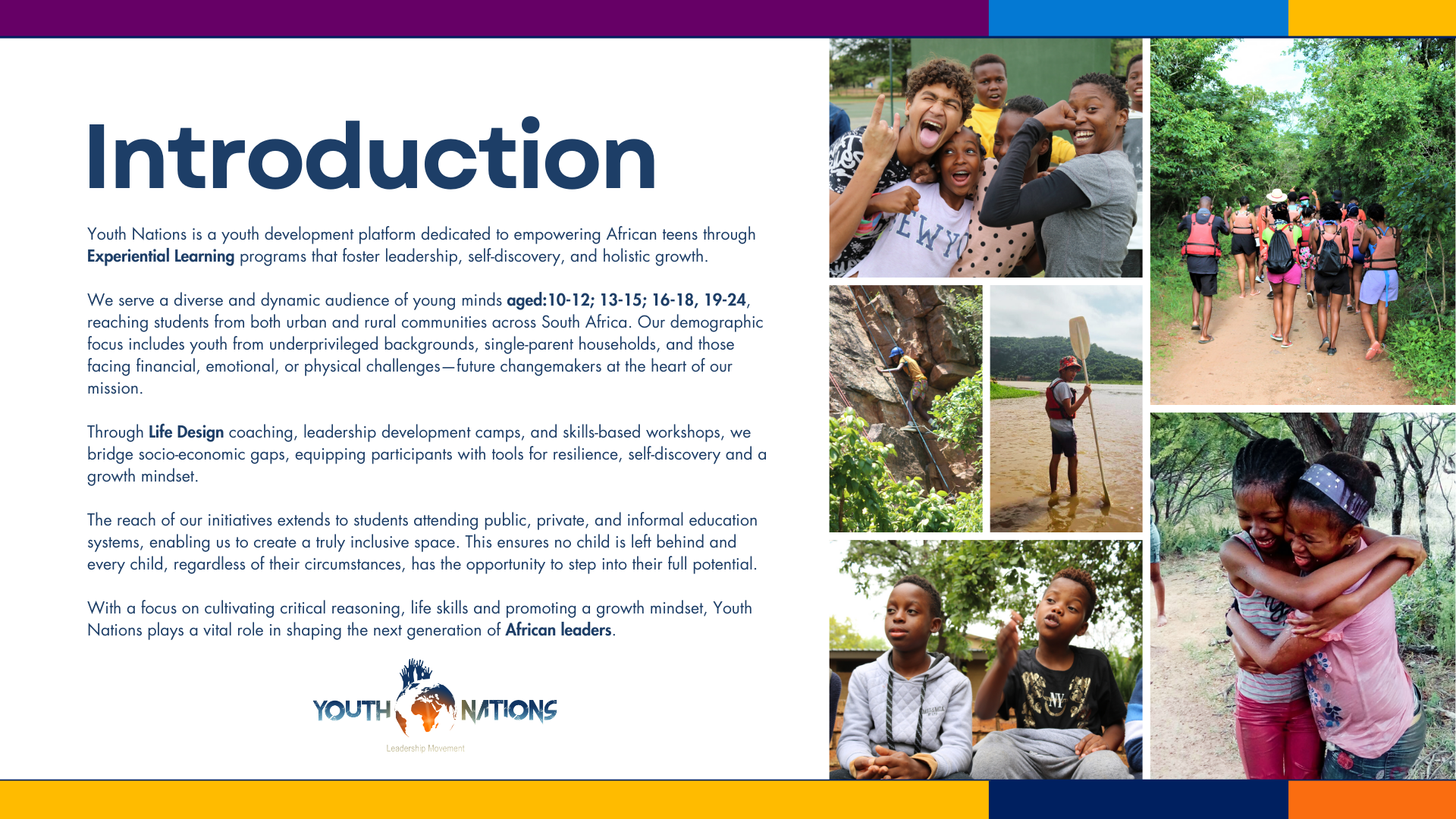 Youth Nations is a youth development platform dedicated to empowering African teens through Experiential Learning programs that foster leadership, self-discovery, and holistic growth.